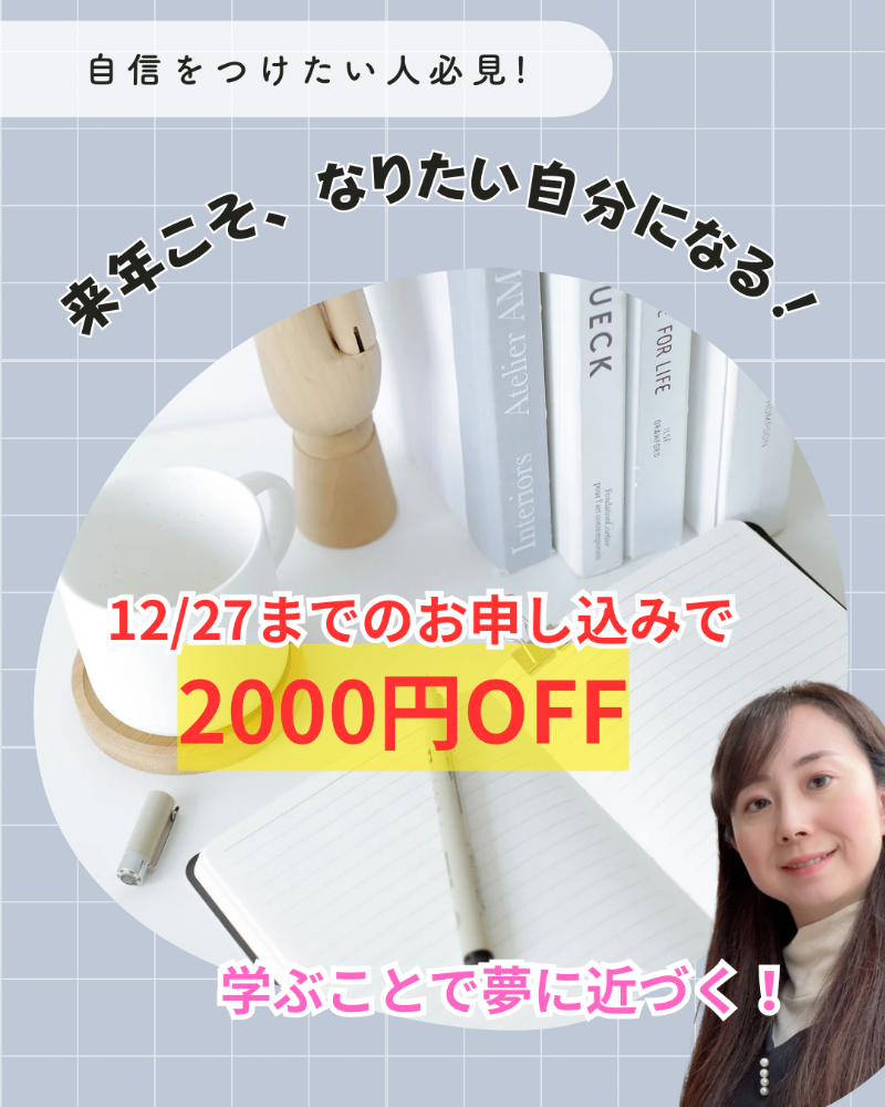 各種講座、12/27迄にお申し込みされた方には、受講料より2000円OFF❣️